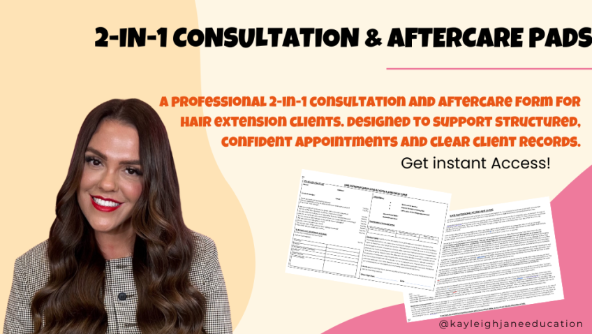 A professional 2-in-1 Consultation & Aftercare Form for Hair Extension Clients